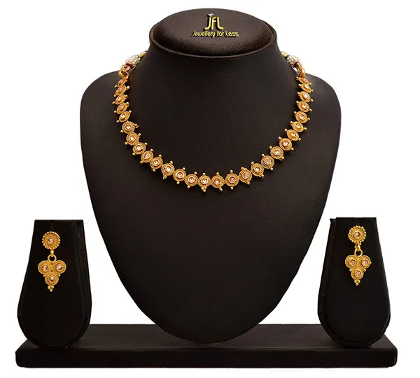 JFL - Traditional Ethnic One Gram Gold Plated Polki Diamond Designer Necklace Set with Earring
