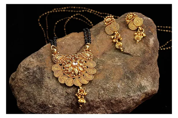 Golden 1 Gm Gold Plated Spiral Diamond Mangalsutra Jewellery Set With Earri..More