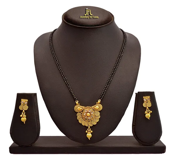 Golden 1 Gm Gold Plated Spiral Diamond Mangalsutra With Earring