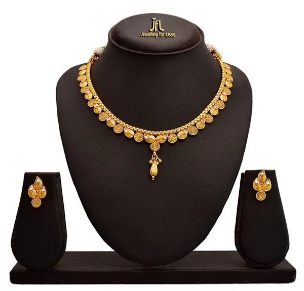 JFL - Traditional Ethnic One Gram Gold Plated Spiral Diamond Designer Necklace Set With Earrings