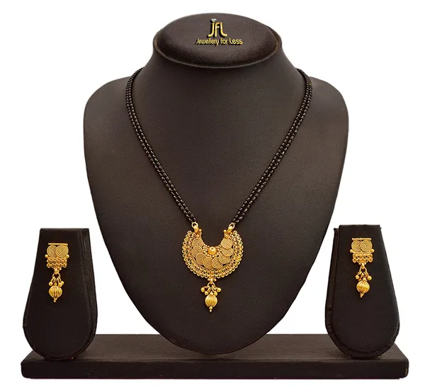 Golden 1 Gm Gold Plated Spiral Mangalsutra Jewellery Set With Earring