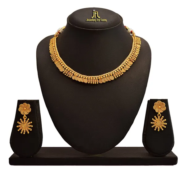 Golden 1 Gm Gold Plated Spiral Necklace Set With Earring