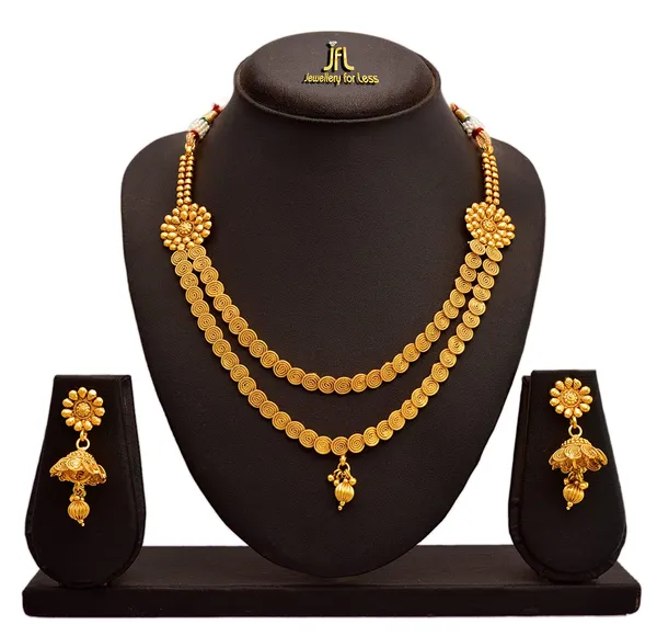 JFL - Traditional Ethnic One Gram Gold Plated Spiral Designer Necklace Set With Earrings