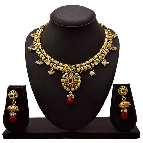 Golden 1 Gm Gold Plated St1 Kundan Pearl Necklace Sets