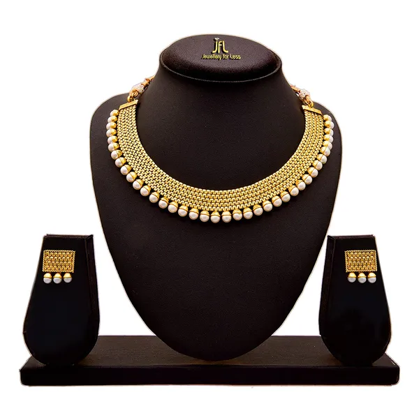 JFL -Traditional Ethnic One Gram Gold Plated White Pearls Necklace Set / Jewellery Set