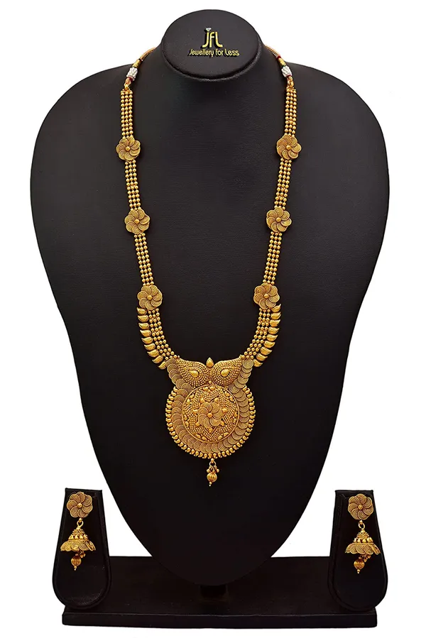Golden And 1 Gm Gold Plated Long Necklace Set With Earring