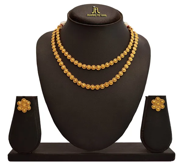 Golden And 1 Gm Gold Plated Necklace Set With Earrings