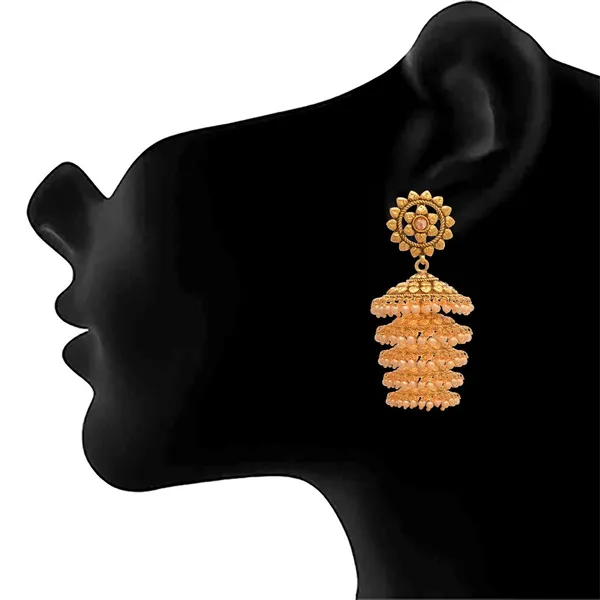 Golden Fusion 1 Gm Gold Plated Champagne Pearls Multi Strand Jhumka Earring..More