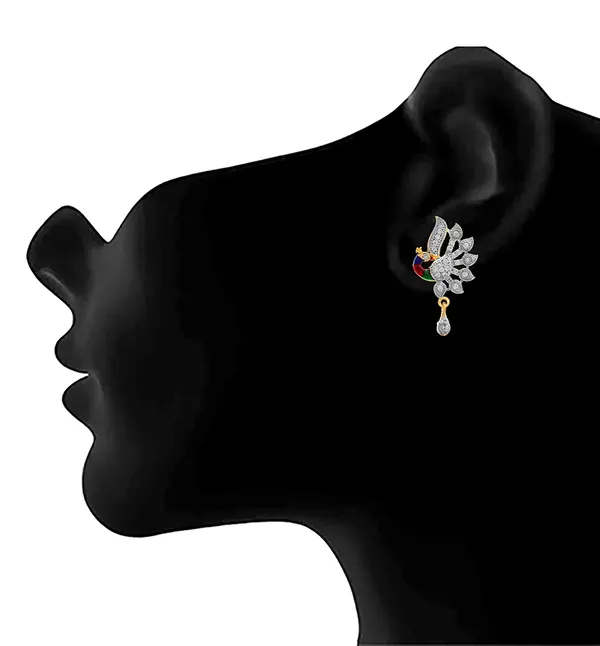 Golden Fusion 1 Gm Gold Plated Cz American Diamond Peacock Pendant Set With..More