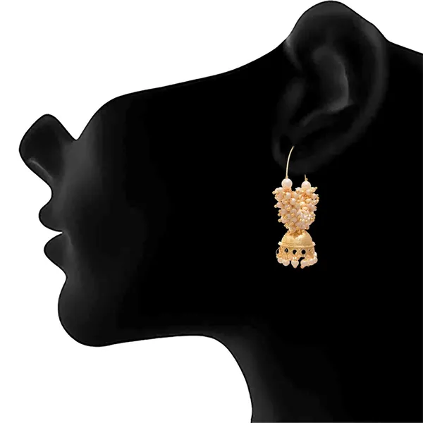 Golden Fusion 1 Gm Gold Plated Pearl Bali Jhumka Earrings