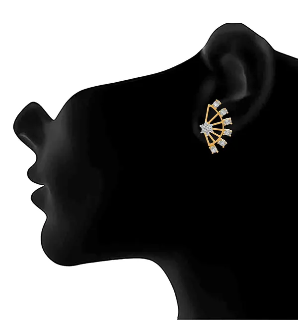 Golden Fusion Cz American Diamond Ear Cuff Earrings Two In 1