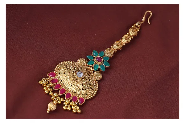 Golden Gold Plated Floral Kundan St1 Studded Maang Tikka