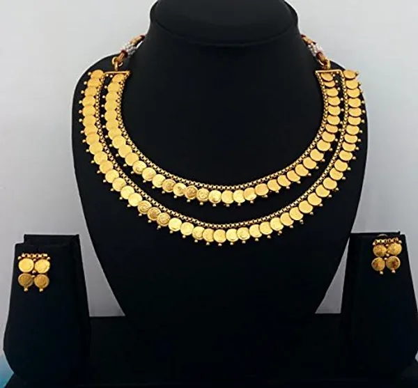 Golden Magnificent Mahalaxmi Coin 1 Gm Gold Plated Necklace / Jewellery Set..More