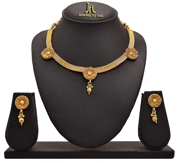 JFL - Traditional Ethnic Spiral Floral One Gram Gold Plated Designer Necklace Set with Earrings & Girls
