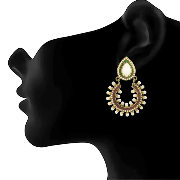 Green & Pink Matt 1 Gm Gold Plated White St1 & , Jhumki Earring