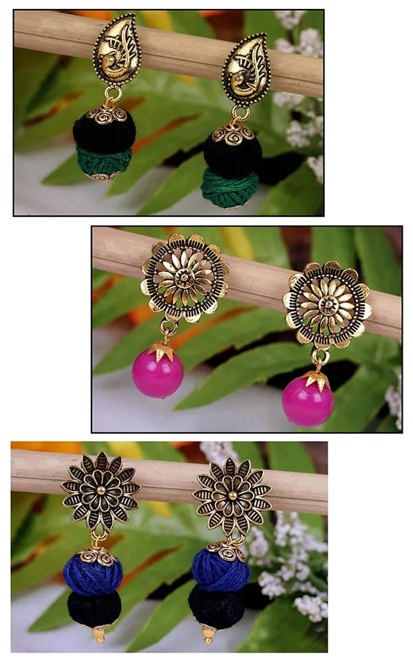 Green, Black, Pink Trendy Floral Oxidised Gold Plated Handmade Cotton Beade..More