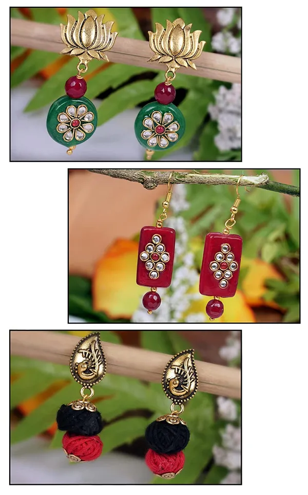Green, Maroon,Black Contemporary Oxidised Gold Plated Handmade Beaded Dangl..More