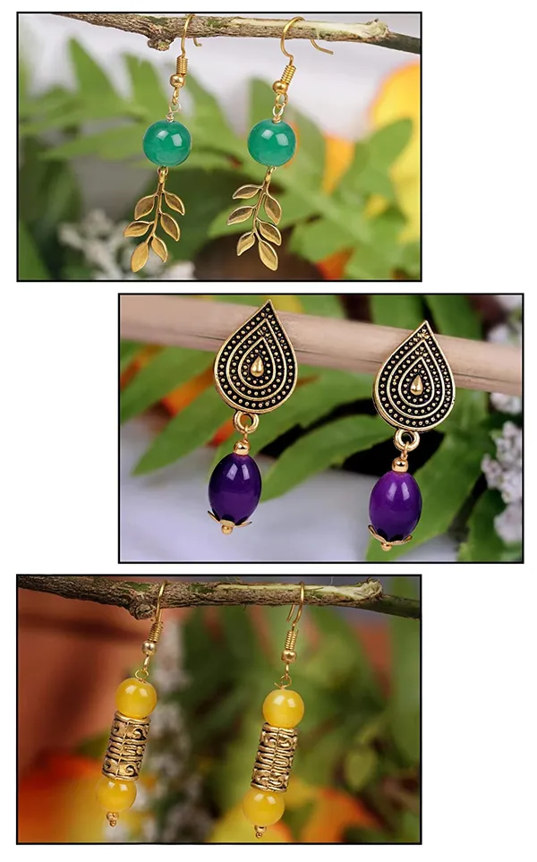 Green, Purple, Yellow Fancy Oxidised German Gold Plated Handmade Beaded Dan..More