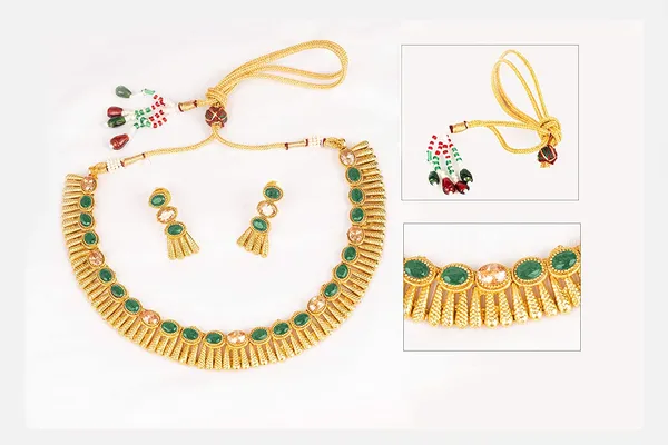 Green 1 Gm Gold Plated St1 With Cz Choker Necklace Set