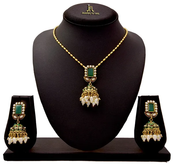 Green 1 Gm Gold Plated St1S Pearls Pendant Sets