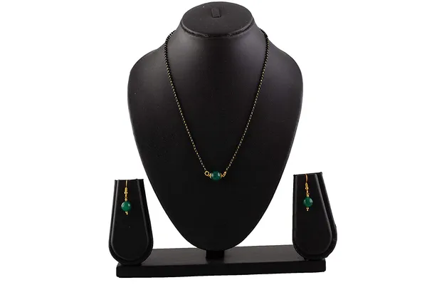 Green 1G Gold Plated Glassy St1 Mangalsutra With Earrings & Black Beaded Ch..More