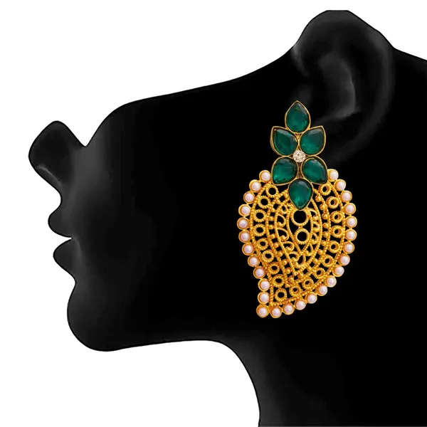 Green And 1Gm Gold Plated St1 & Pearls Embedded Earrings