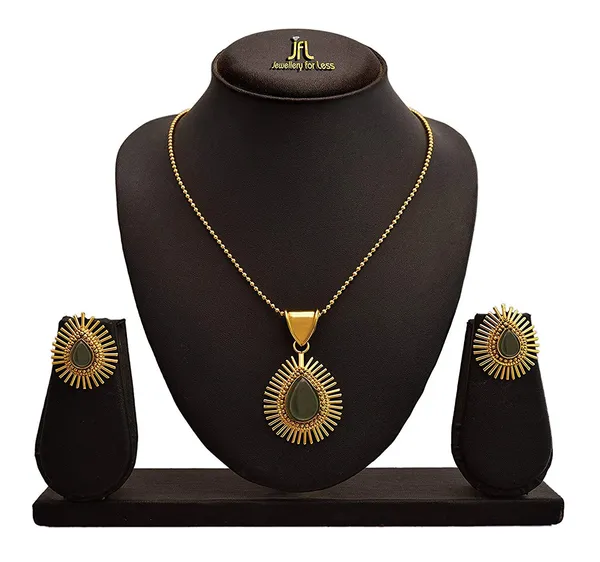 Green Beautiful Big Glossy St1 Pendant With Chain & Earring Sets