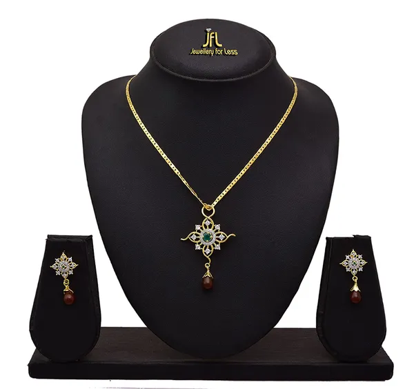 Green,Brown 1 Gm Gold Plated Cz American Diamond & Brown St1 Pendant Set