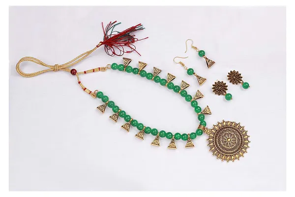 Green Contemporary Floral Gold German Silver Oxidized Combo Of 2 Earrings A..More