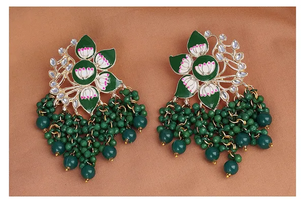Green Contemporary Gold T1 Lotus Meenakari Floral Design White St1 Studded ..More