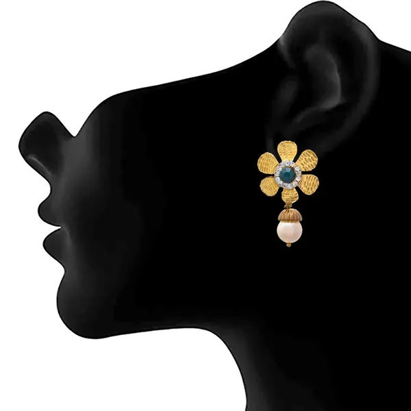 Green Fusion 1 Gm Gold Plated Pearl & Diamond Earring