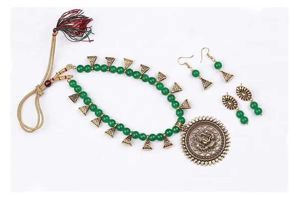 Green Gajamukha Gold German Silver Oxidized Combo Of 2 Earrings And Beaded ..More