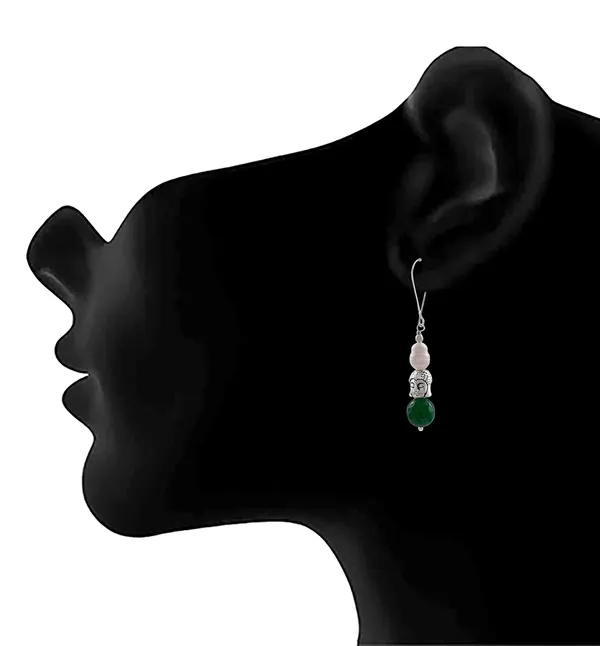 JFL -JFL - German Silver Plated Oxidised Buddha, Semi Precious Pearl and Green Agate Bead Designer Earrings and Women