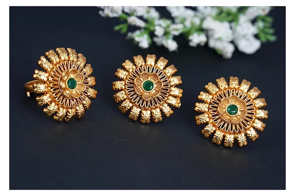 Green Gold Plated Floral St1 Studs Earring With Floral Finger Ring