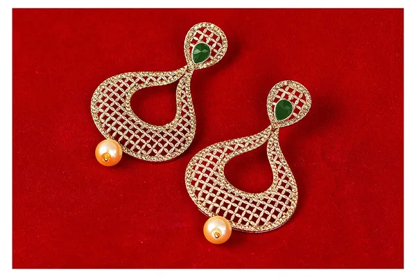 JFL - Jewellery for Less Gold Plated Jali Pattern Stone and LCD Diamond Studded Dangler Earrings Women love jewellery specially Fashions jewellery adore a women You can wear this Earrings on all occasion This beautiful piece of jewellery will enhance your beauty and compliment you Make your moment memorable with this high quality fashion earrings This earrings women’s wear on like ring ceremony, wedding and any traditional festive time, daily wear,office wear This pretty earring pair makes your look impressive for any occasion It will make your moment memorable with this range This designed Earrings will go well matching With Any Attire Like dress,saree This Earrings will definitely be a treasured inclusion in every woman's jewellery collection new range of fashion earrings - Designer, Classy, Charming, Elegant, Appealing, Affordable, Casual as well as party wear, Pocket-friendly, Superb quality, High quality plating, Skin friendly, Non-allergic, Attractive, Mesmerising, etc