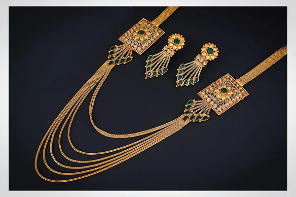 Green Gold Plated Multi Strand Chain Floral Filigree Design With & Color St..More