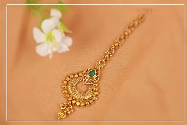 Green Gold Plated Polki St1 Mango Design With Drop Dangler Maang Tikka/Girl..More
