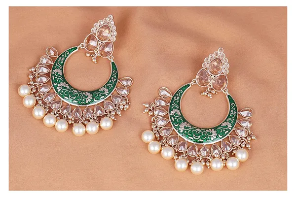 Green Gold T1 Filigree Design With Enamelled Meenakari Polki St1 Pearl Drop..More