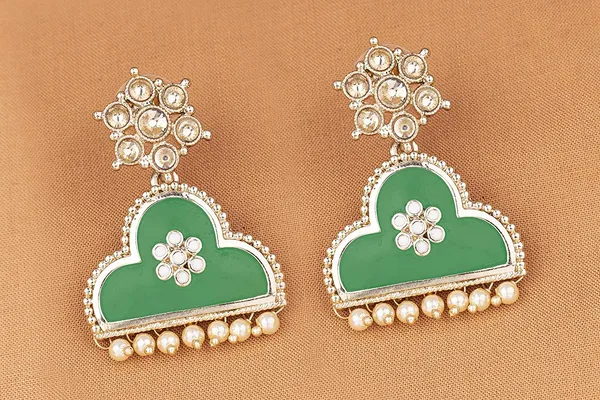 JFL - Jewellery for Less Gold Tone Floral Scallop Shape Meenakari Painted Cz LCD Stone Studded with Drop Pearl Dangler Earring Women love jewellery specially Fashions jewellery adore a women You can wear this Earrings on all occasion This beautiful piece of jewellery will enhance your beauty and compliment you Make your moment memorable with this high quality fashion earrings This earrings women’s wear on like ring ceremony, wedding and any traditional festive time, daily wear,office wear This pretty earring pair makes your look impressive for any occasion It will make your moment memorable with this range This designed Earrings will go well matching With Any Attire Like dress,saree This set will definitely be a treasured inclusion in every woman's jewellery collection new range of fashion earrings - Designer, Classy, Charming, Elegant, Appealing, Affordable, Casual as well as party wear, Pocket-friendly, Superb quality, High quality plating, Skin friendly, Non-allergic, Attractive, Mesmerising, etc