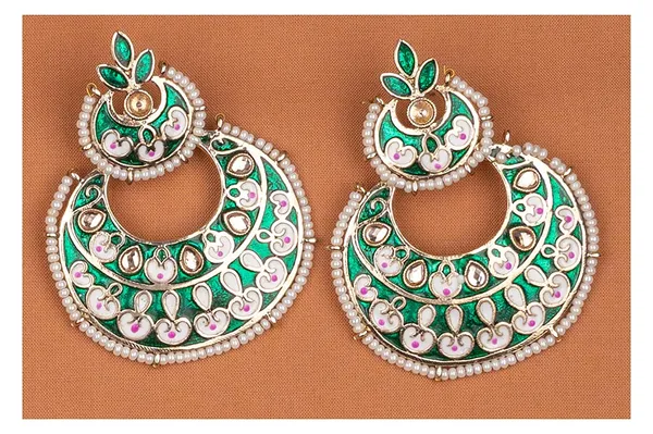 Green Gold T1 Meenakari Pearl And Cz St1 Studded Chandbali Earrings