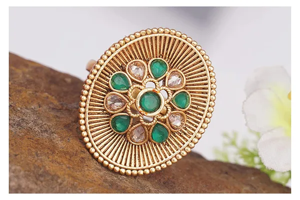 Green Matte Gold Plated Beautiful Oval Shaped Polki St1 And Diamond Studded..More