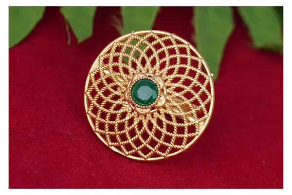 Green Matte Gold Plated Filigree Design Adjustable Finger Ring