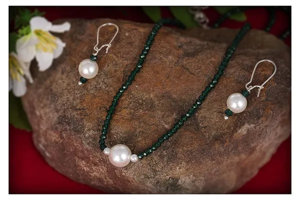 Green Modern Fusion Mangalsutra With Pearl & Onyx Crystal Chain And Earring