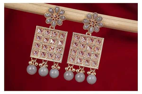Grey Gold T1 Floral And Polki St1 With Drop Dangler Earring/Girls
