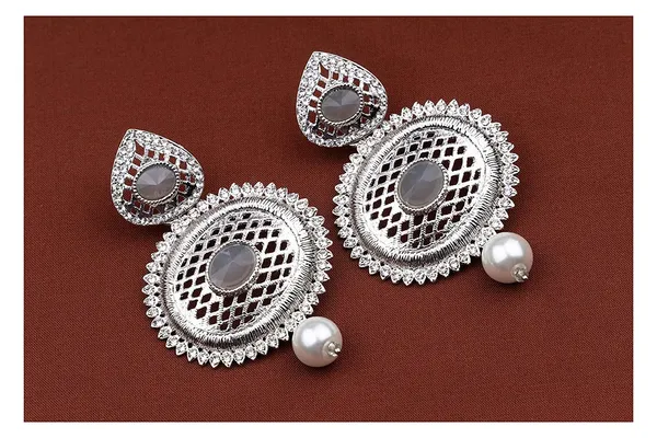 JFL - Jewellery for Less Silver Plated Oval Shape Cz Diamond Polki and Stone Studded Drop Pearl Dangler Earrings Women love jewellery specially Fashions jewellery adore a women You can wear this Earrings on all occasion This beautiful piece of jewellery will enhance your beauty and compliment you Make your moment memorable with this high quality fashion earrings This earrings women’s wear on like ring ceremony, wedding and any traditional festive time, daily wear,office wear This pretty earring pair makes your look impressive for any occasion It will make your moment memorable with this range This designed Earrings will go well matching With Any Attire Like dress,saree This Earrings will definitely be a treasured inclusion in every woman's jewellery collection new range of fashion earrings - Designer, Classy, Charming, Elegant, Appealing, Affordable, Casual as well as party wear, Pocket-friendly, Superb quality, High quality plating, Skin friendly, Non-allergic, Attractive, Mesmerising, etc