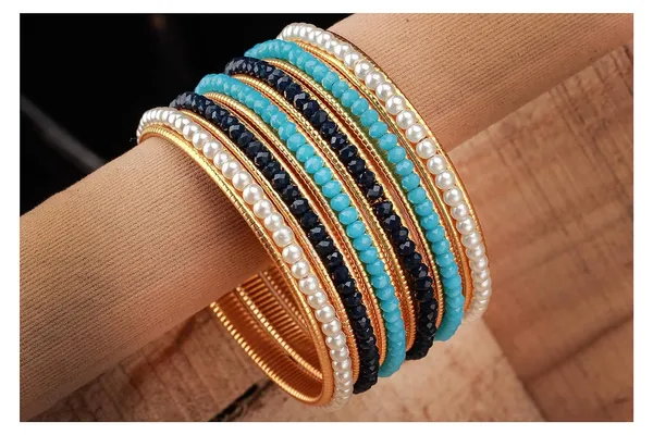 Handcrafted Combo Of Pearl, Turquoise Blue And Blue Crystal Beaded Gold Pla..More