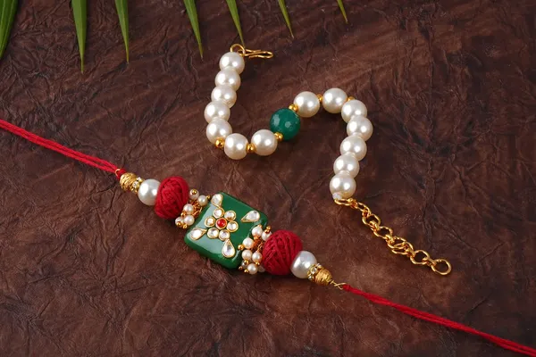 Handmade Kundan Colorful Stone & Pearl,Cotton Bead Rakhi For Brother, Combo..More