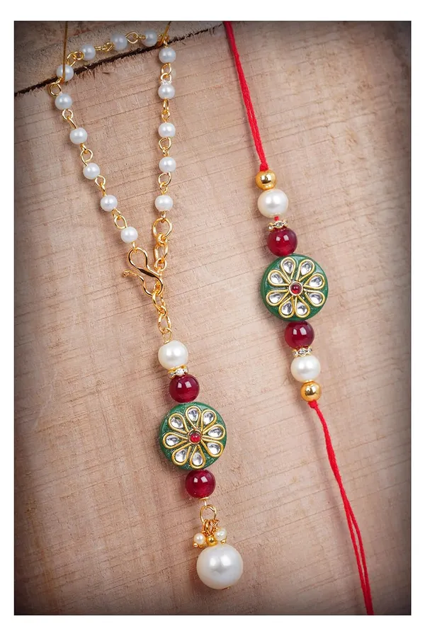 Handmade Kundan Green Stone Rakhi For Brother Combo Fancy Designer Collecti..More