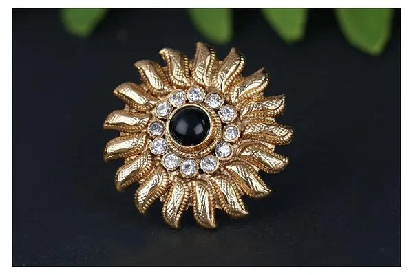 Latest American Diamond Studded Gold Plated Floral Design Adjustable Finger..More