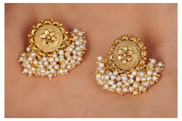 Latest Traditional Gold Plated Floral And Pearls Beaded Stud Earring For Wo..More